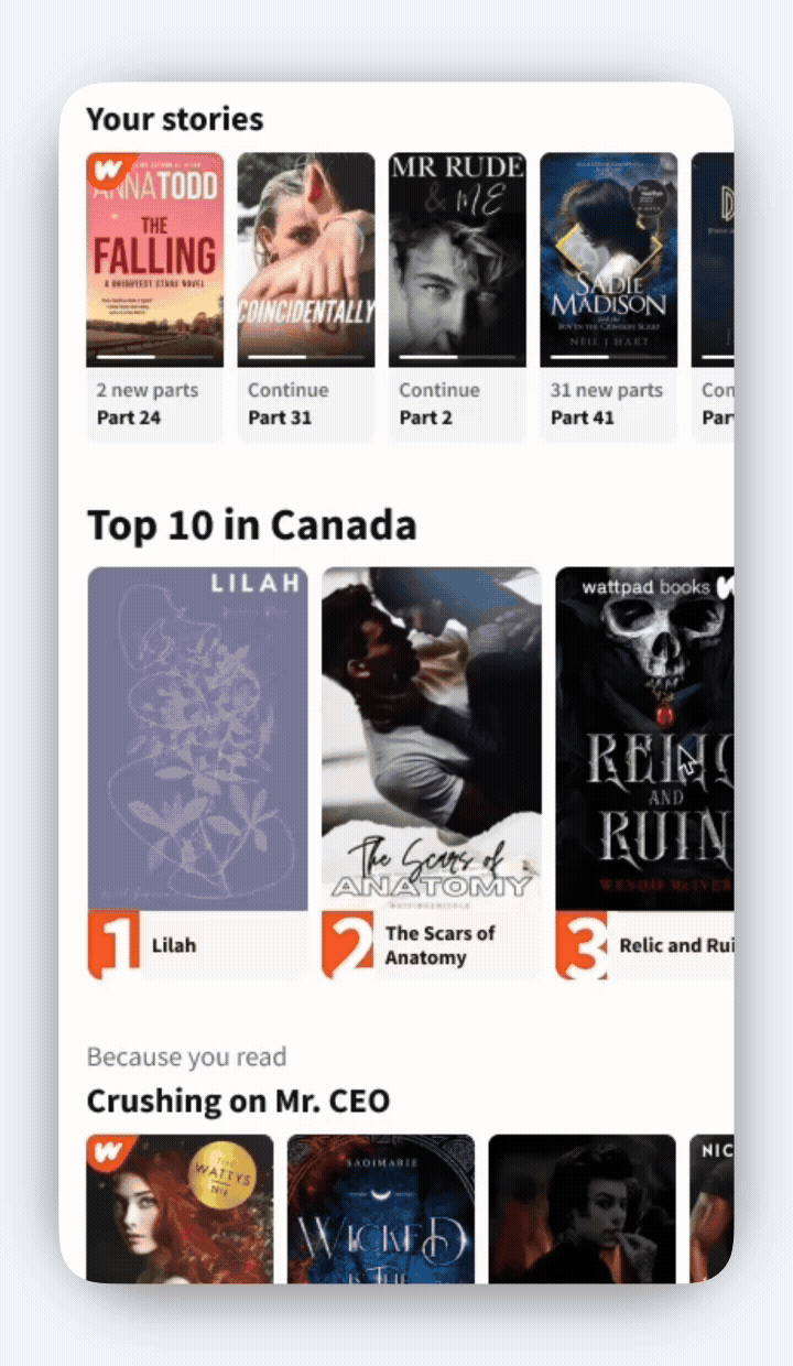 Every user on Wattpad saw the same homepage regardless of reading preferences, tenure on the platform, or how much and how they used the app.